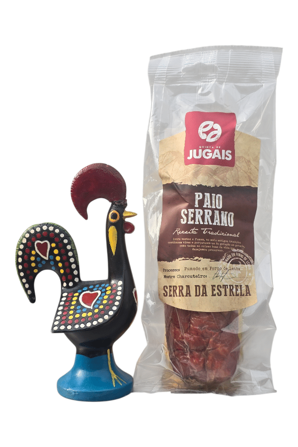 Wat we zo leuk vinden aan de Serra da Estrela Paio van Quinta de Jugais is dat hij laat zien dat er naast de chouriço nog een heel andere wereld aan Portugese vleeswaren bestaat. Er is meer dan alleen de chouriços waar je als toerist niet onderuit komt. Quinta de Jugais maakt al sinds 2001 traditionele streekproducten aan de voet van de Serra da Estrela. De paio is binnen hun assortiment het product dat het dichtst bij de klassieke Portugese charcuterie traditie staat. Een traditie waarbij geduld het belangrijkste ingrediënt is, want een goede paio wordt niet gemaakt maar gerijpt. Quinta de Jugais houdt vast aan die ambachtelijke aanpak, zonder concessies aan het proces en zonder onnodige toevoegingen. Inmiddels exporteren ze naar meer dan veertig landen, maar de Serra da Estrela Paio smaakt nog precies zoals hij altijd gesmaakt heeft.